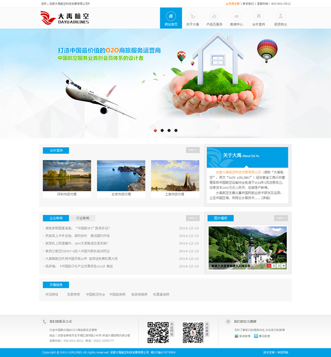 大禹航空主要從事中國民航業(yè)技術研發(fā)及運用,立足中國區(qū)域,利用云計算技術緊密結(jié)合民航業(yè)、旅游業(yè)、酒店業(yè)的商務著眼點,以航空服務及入侵航空銷售與政策渠道,通過核心人力專業(yè)合作且互補資源,建立了具有O2O運營模式的一站式航旅服務智能化平臺(DayuAir.com),并配套了專業(yè)的“中國民航呼叫中心創(chuàng)新基地”和“空鐵聯(lián)運服務中心”為平臺提供線上線下的支持與保障。